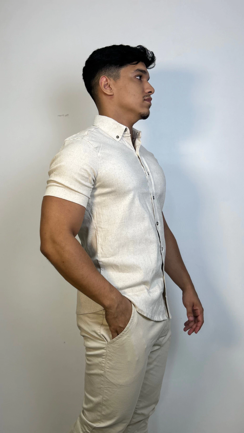 Esta camisa de linho, com 2% de elastano, oferece um ajuste perfeito e a flexibilidade que você precisa para se movimentar com liberdade. Ideal para ocasiões casuais ou eventos que pedem um look sofisticado e descomplicado. O toque natural do linho garante frescor, enquanto o elastano adiciona a elasticidade necessária para maior conforto.